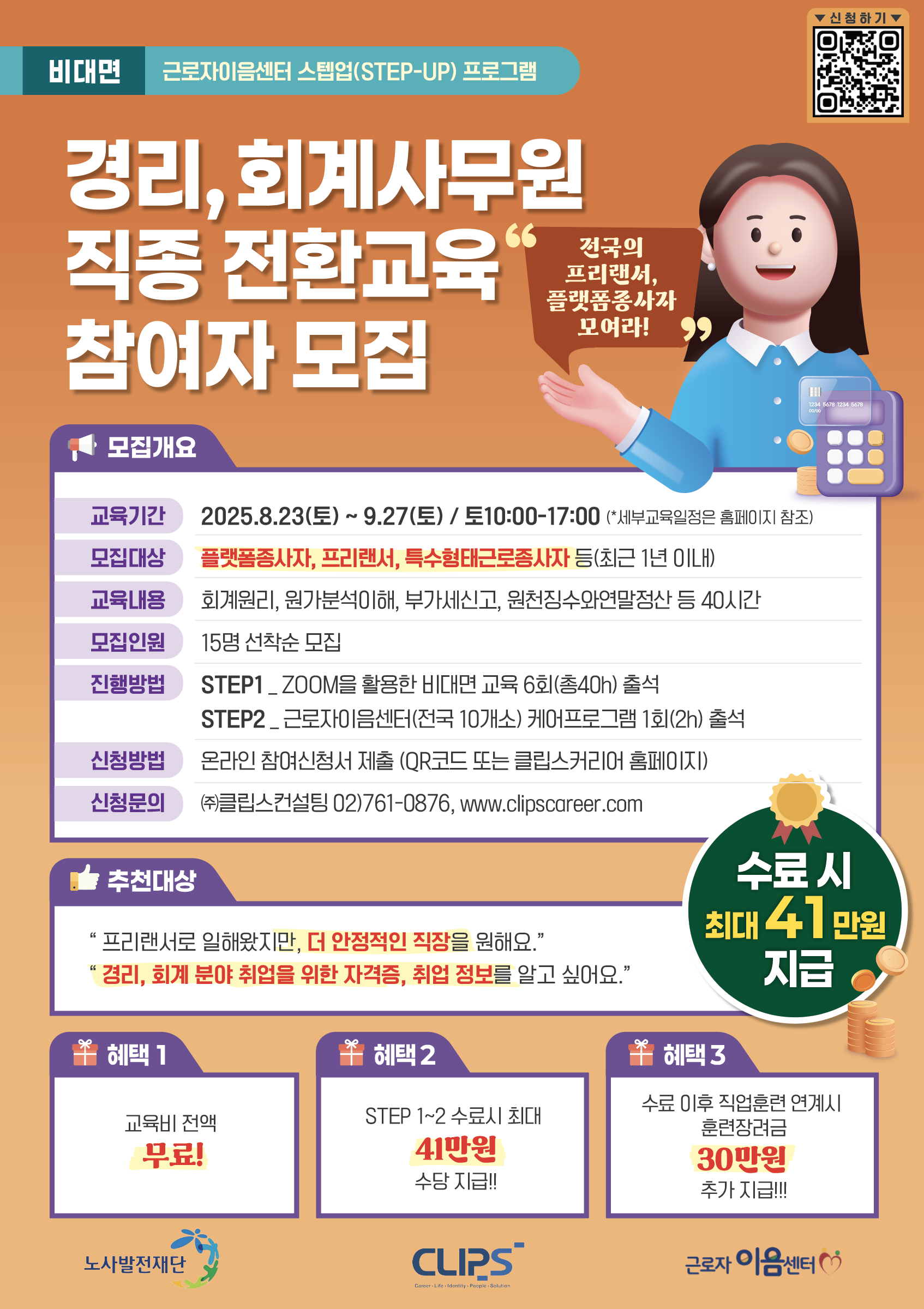 ▶비대면교육 [경리·회계사무원 직종 전환교육] https://www.clipscareer.com/69