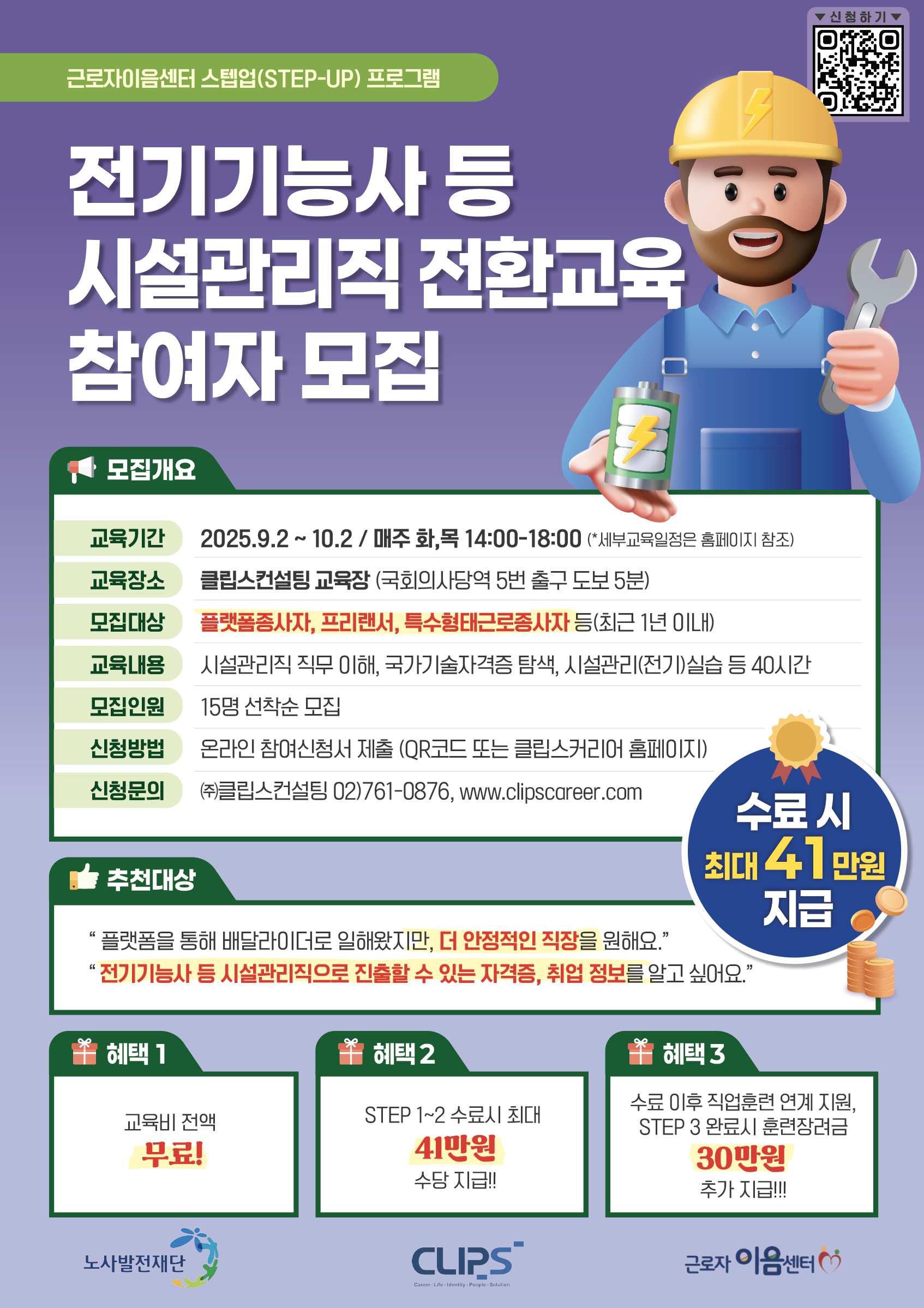 ▶서울 대면교육 [전기기능사 등 시설관리직 전환교육] https://www.clipscareer.com/65