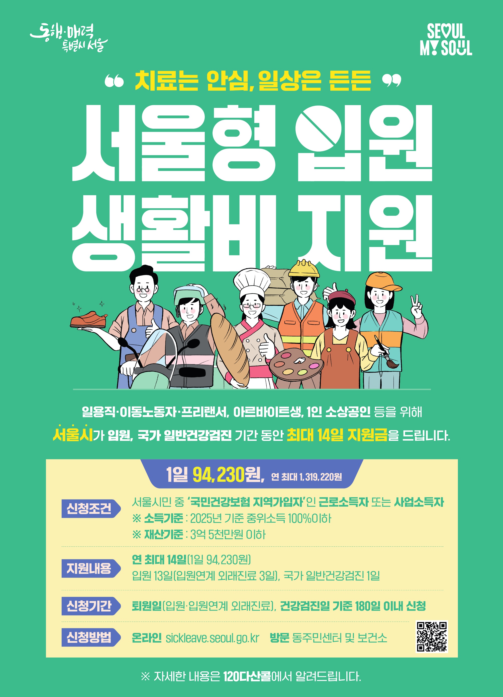 자세한 내용은 서울형 입원 생활비 지원 홈페이지에서 확인해주세요!