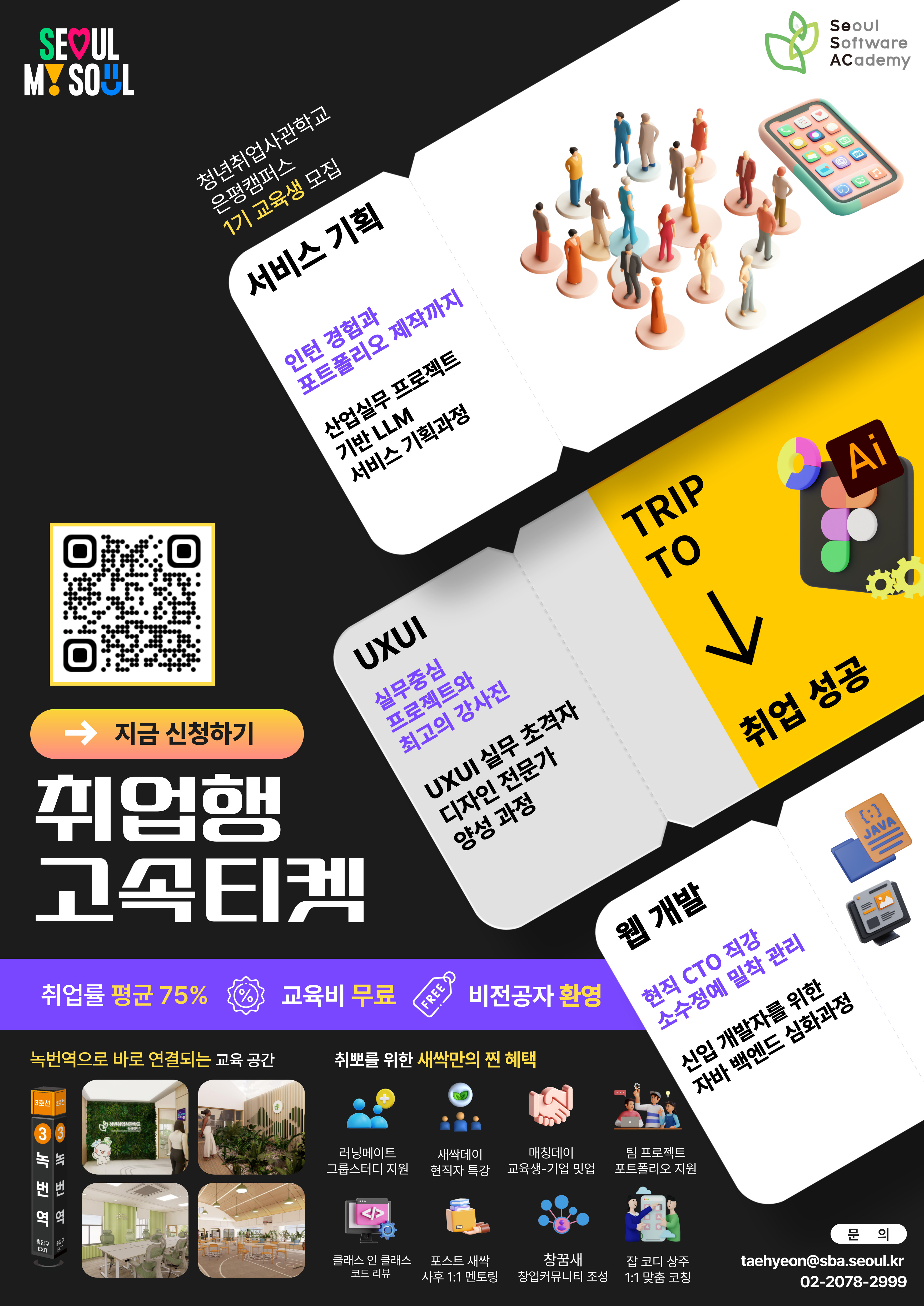 📌 신청방법 : 청년취업사관학교 누리집(https://sesac.seoul.kr/)