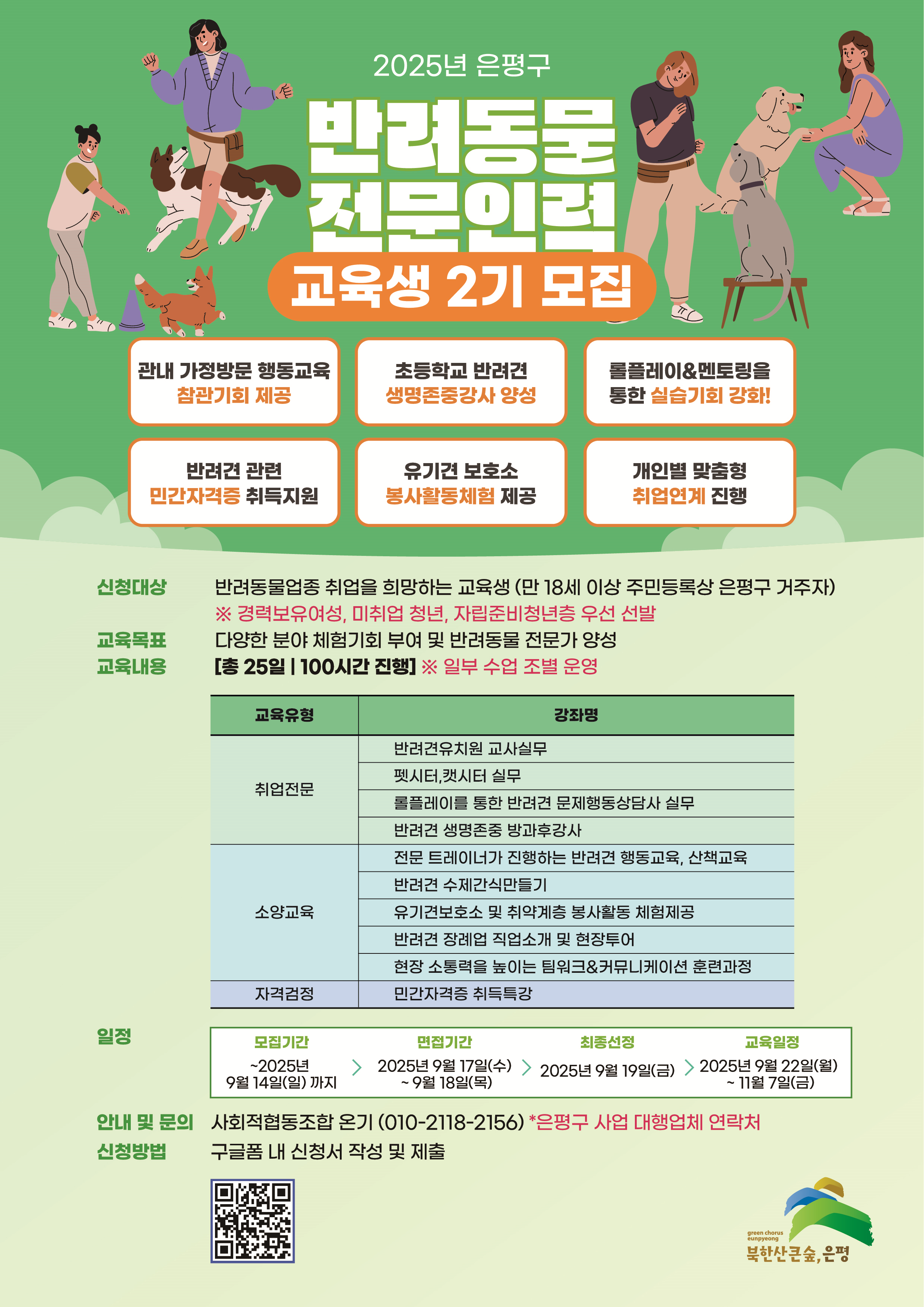 - 반려동물 산업 분야 취업을 준비 중이거나 교육을 희망하는 구민 25명