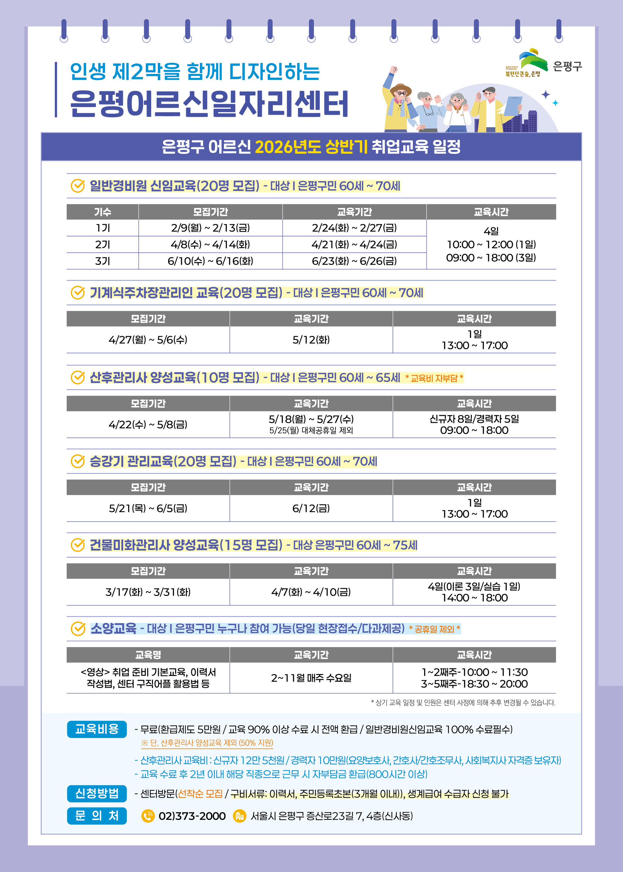 [공유] 은평어르신일자리센터 2026년 상반기 취업교육 일정 안내