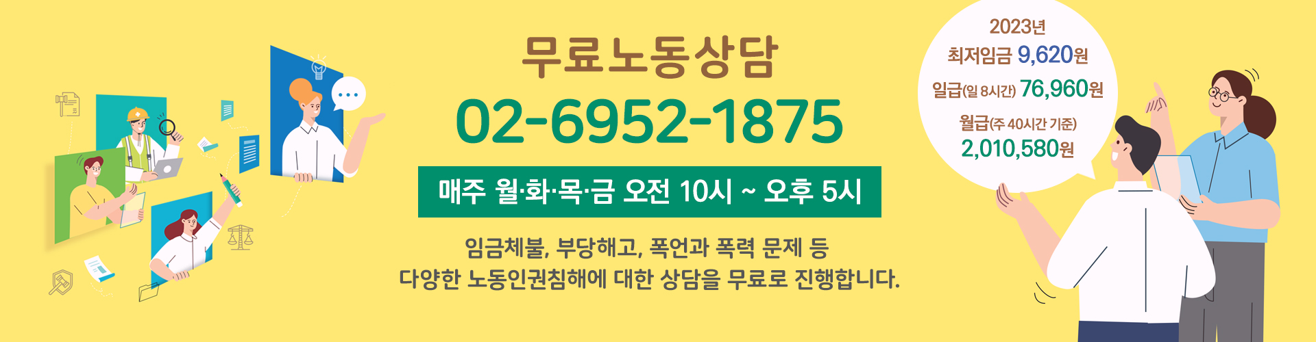 서울 어디에서나 1661-2020으로 전화하시면 무료로 노동법률상담을 받으실 수 있습니다.