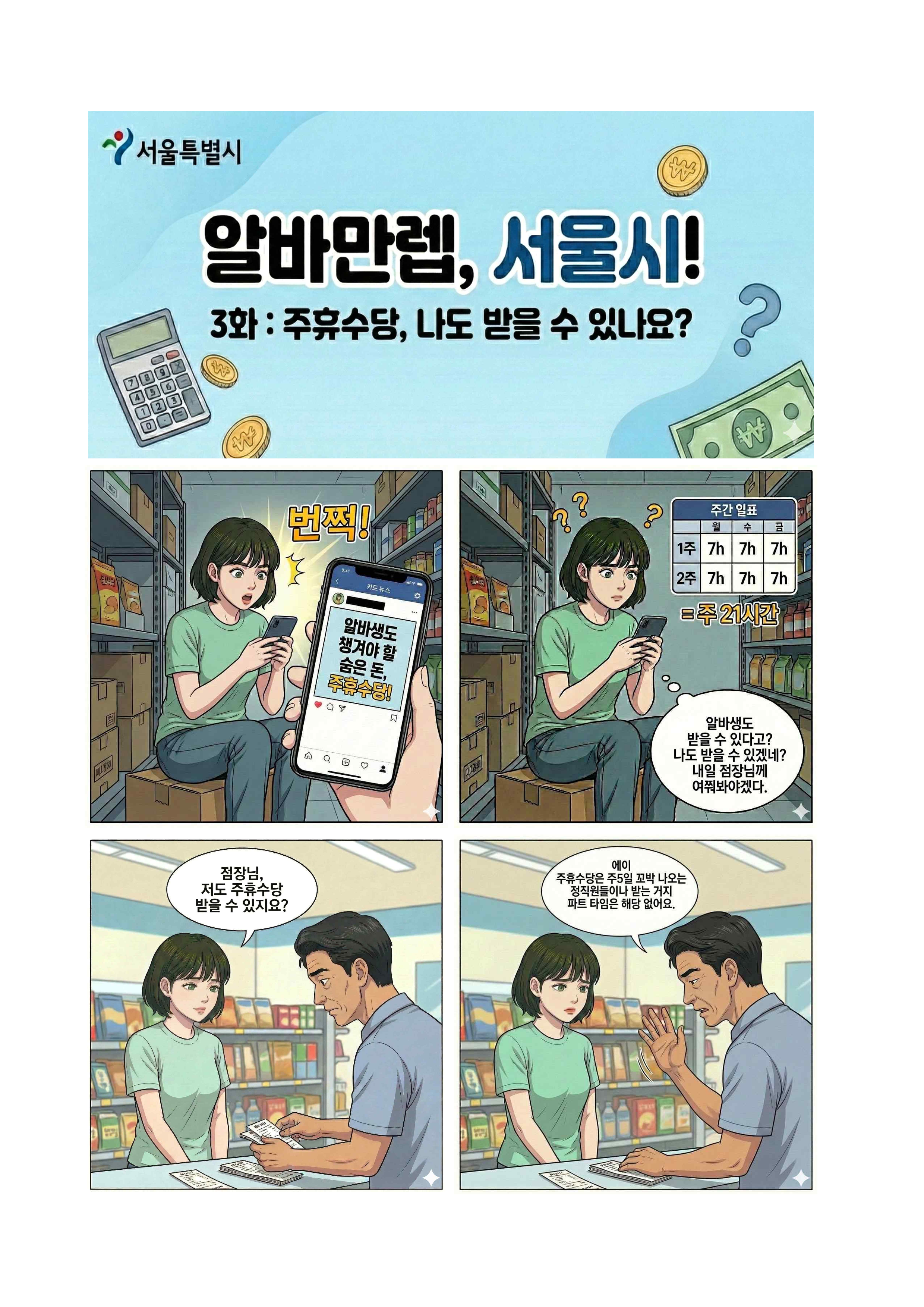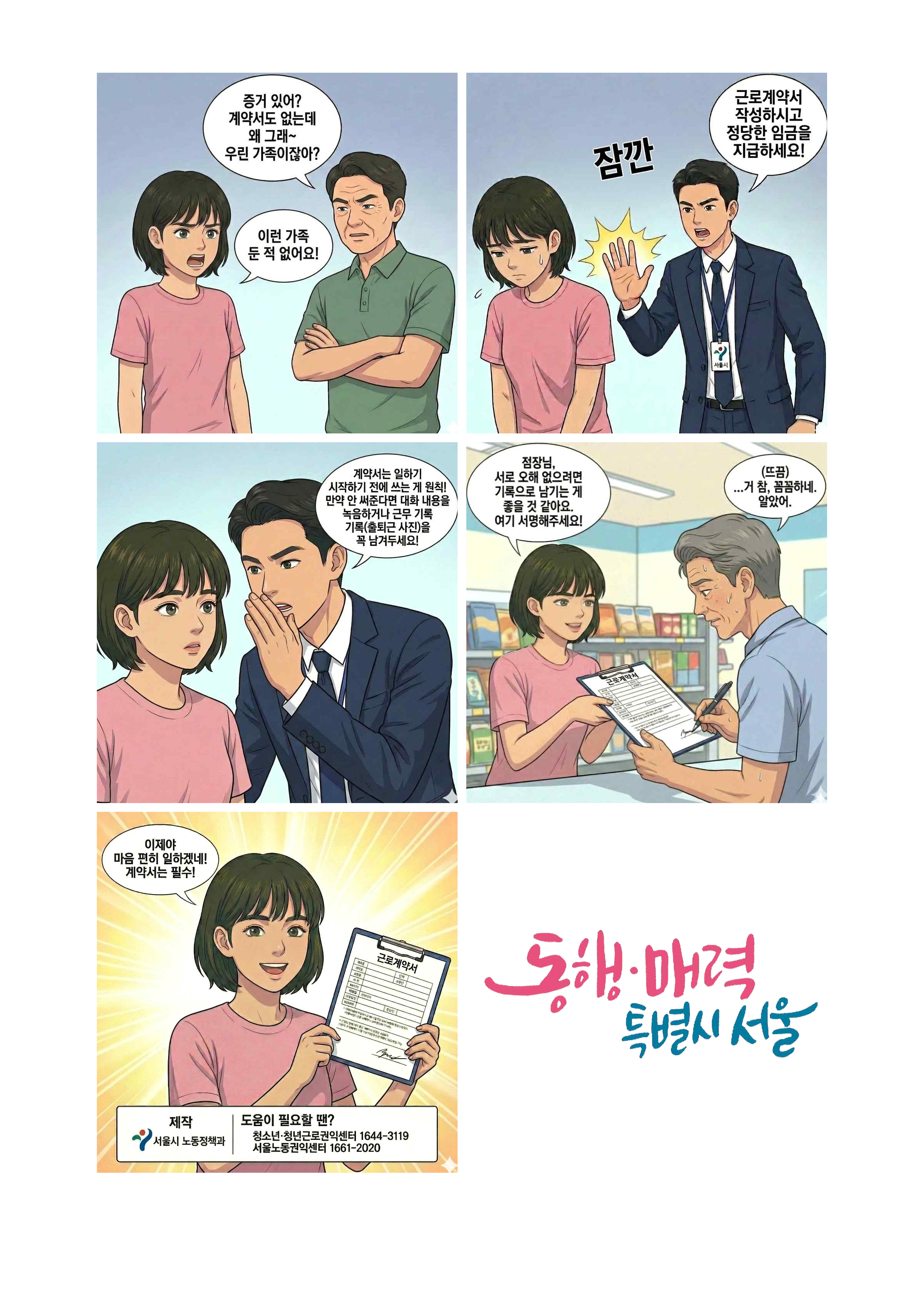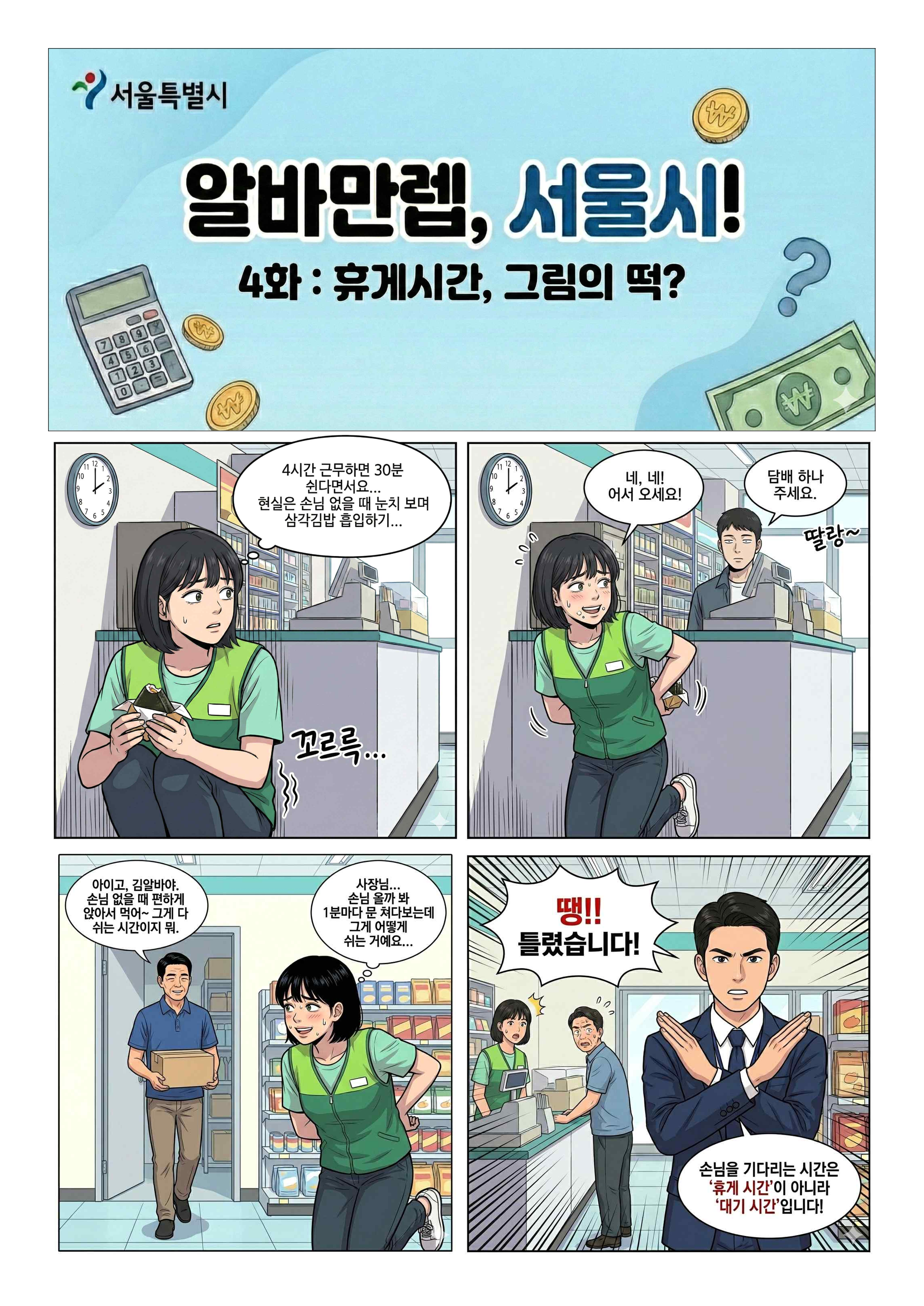 처음 시작하는 아르바이트, 설레기도 하지만 “계약서는 어떻게 쓰지?”, “이거 부당해고 아닌가?” 고민될 때 많으셨죠? 여러분의 소중한 노동 권익을 지키기 위해 서울시가 야심 차게 준비한 웹툰 <알바만렙 서울시>시리즈를 공개합니다!